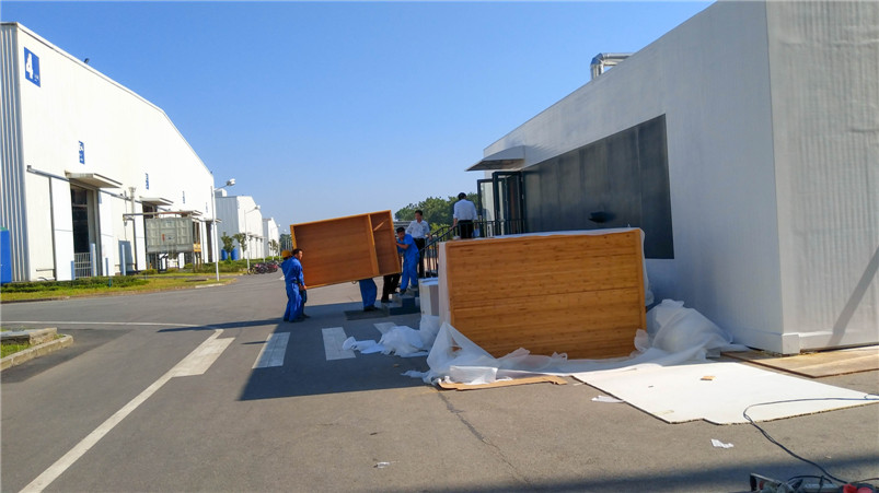 遠(yuǎn)大可建是遠(yuǎn)大科技集團(tuán)全資子公司,是全球持續(xù)建筑的先驅(qū)?;趯?duì)竹材的喜愛和對(duì)竹材環(huán)保的高度認(rèn)可,遠(yuǎn)大總裁張劍參與此次與桃花江竹材科技在其塔式酒店產(chǎn)品竹整裝項(xiàng)目的洽談。在遠(yuǎn)大可建汨羅工廠,酒店竹整裝三套樣板間安裝施工已基本完成,內(nèi)部裝飾全部在桃花江竹材科技工廠加工后運(yùn)至在現(xiàn)場(chǎng)組裝,地面鋪設(shè)竹地板,整體效果簡(jiǎn)潔、自然、溫馨。遠(yuǎn)大總裁張劍視察樣板間后對(duì)竹材裝飾效果十分滿意,表示將加大對(duì)可建酒店竹整裝項(xiàng)目的研發(fā)與推廣,加強(qiáng)與桃花江竹材科技的合作,期望未來全世界每三幢新建建筑就有一幢是可建。