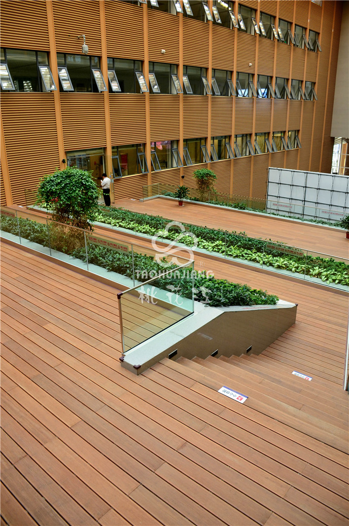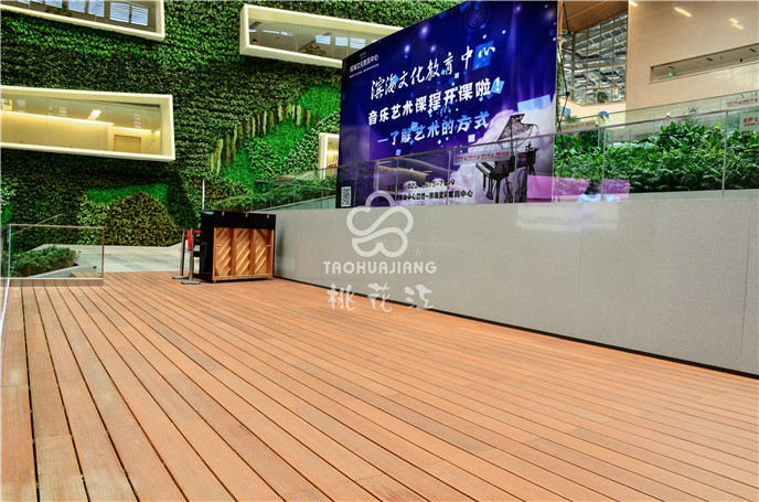 濱海新區(qū)文化中心項(xiàng)目中的市民活動(dòng)中心區(qū)域采用桃花江戶外防腐竹地板。竹材深厚的文化底蘊(yùn)與其優(yōu)異自然環(huán)保的性能一直是文化場(chǎng)館建設(shè)材料。