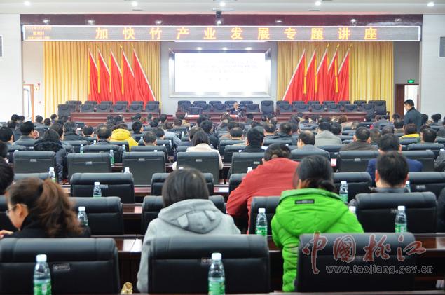 12月9日,黨政大樓附屬樓三樓會(huì)議室里,一場(chǎng)高規(guī)格的加快竹產(chǎn)業(yè)發(fā)展專題講座在這里舉行??h委副書記何軍田主持,縣領(lǐng)導(dǎo)唐學(xué)文、李質(zhì)彬、馬文才、陳震宇、胡國(guó)清、肖立新、張亮榮、劉武出席。副處級(jí)以上干部,縣直單位、鄉(xiāng)鎮(zhèn)負(fù)責(zé)人,林業(yè)系統(tǒng)工作者共400余人濟(jì)濟(jì)一堂,認(rèn)真聆聽了中國(guó)工程院院士、中國(guó)竹子加工利用首席科學(xué)家、南京林業(yè)大學(xué)教授張齊生和國(guó)家林業(yè)局竹子研發(fā)中心科研處處長(zhǎng)、竹筍專家、高級(jí)工程師吳良如精彩而豐富的竹產(chǎn)業(yè)講課。